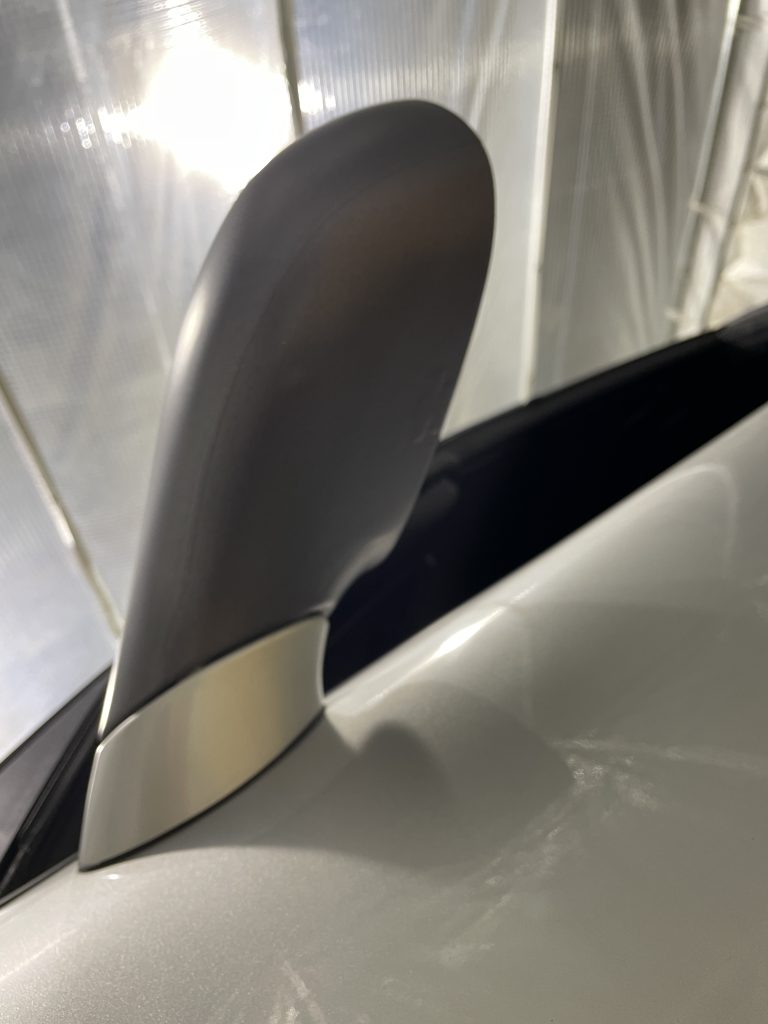 ドアミラーは三分割です。それでもかなりの曲面なのでシートにはかなりの負荷はかかっています。O様はこうやって貼るのですね!と参考になったようです。