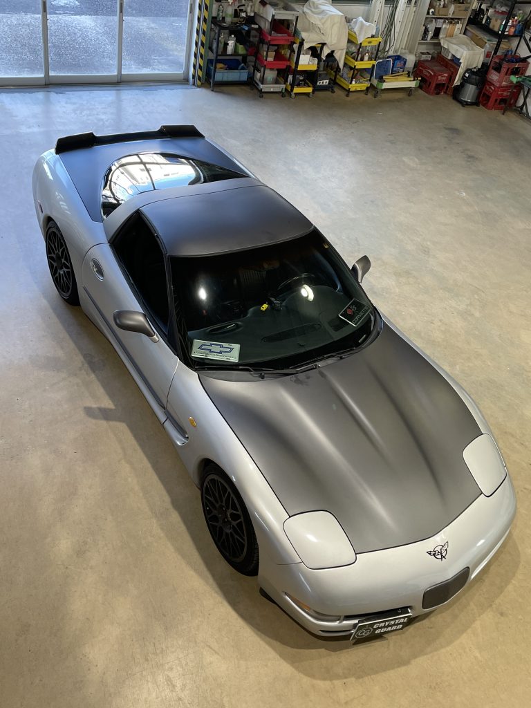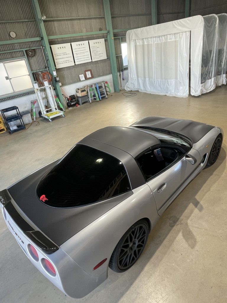 #コルベットC5ラッピング #3Mマットダークグレー施工名古屋 #U字形のトランク #ドアミラーラッピング