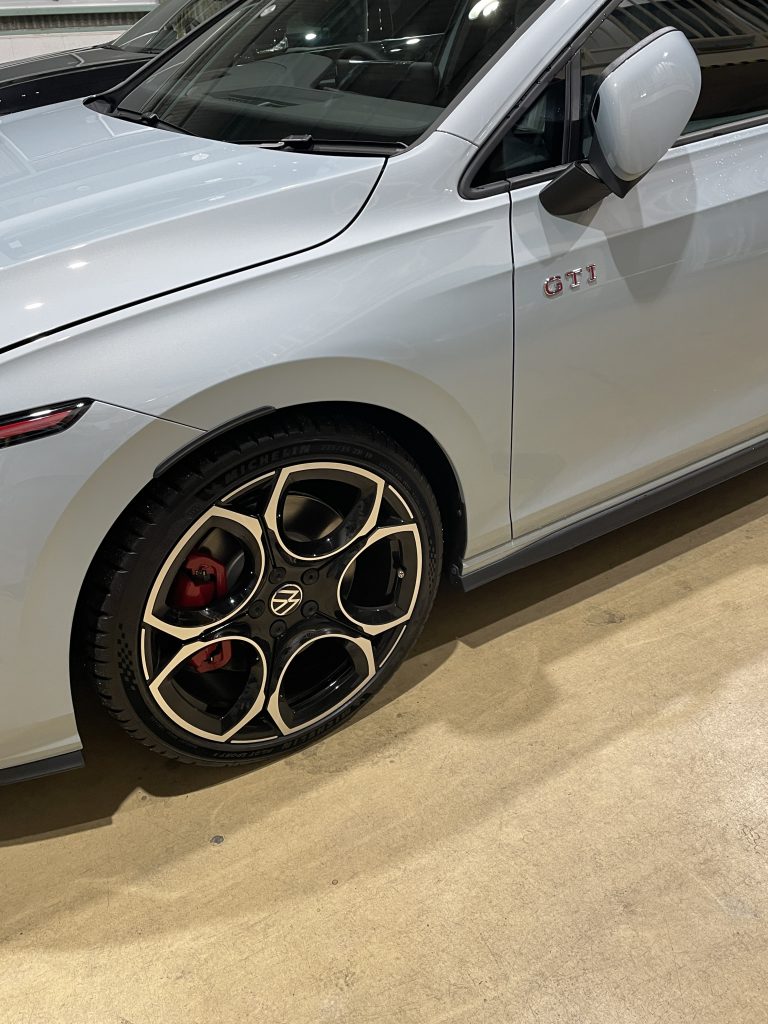 余談ですが、GTIのホイールデザインはとてもいいですね。 ところでいくら新車と言えどメーカーから船に乗って、陸揚げ基地で数日、ディーラーの新車センターでまた数日、ようやく店舗という旅路のせいで、水平面には雨のシミがびっしり!鏡面研磨でツルツルに仕上げたからコーティングに入ります。