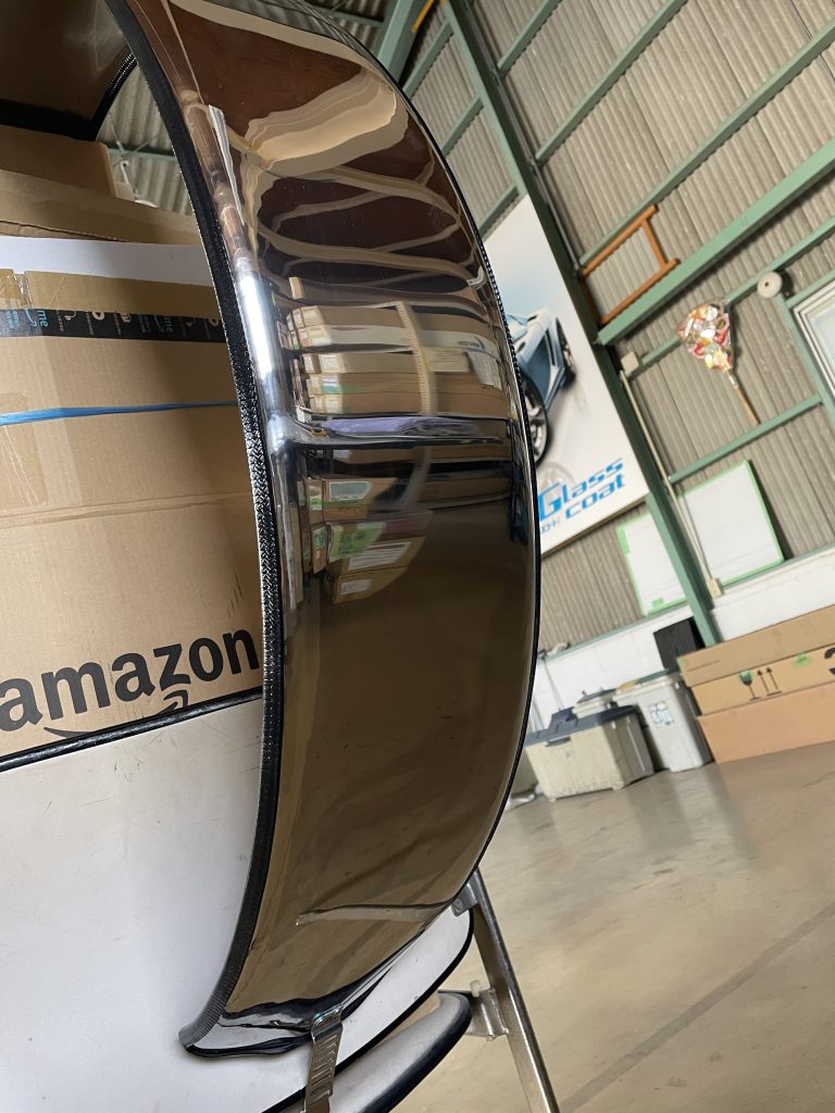 名古屋市東区のI様からスペアタイヤのステンレスカバーを黒でラッピングするご依頼いただきました。以前ベンツゲレンデのものは何度か施工しました。今回、外して持っていらっしゃったので、どうやって固定するのか?あれこれやってみました。