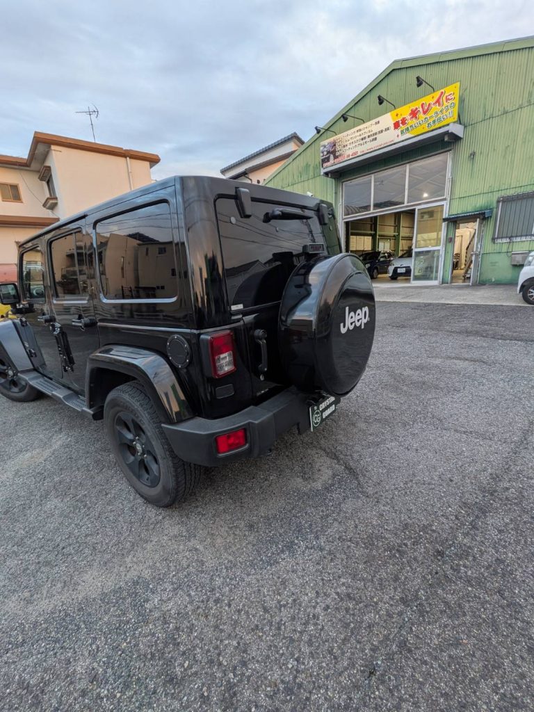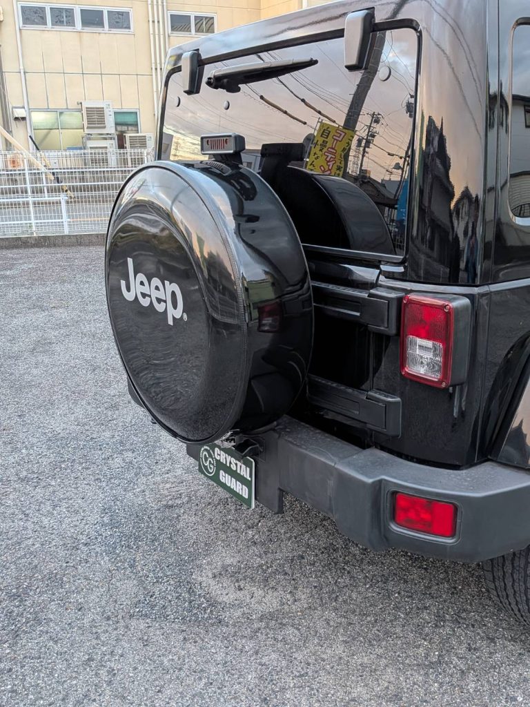#ジープ背面スペアタイヤカバーラッピング #ジープラングラー背面 #タイヤカバーステンレスラッピング #ステンレスカバーラッピング #3M 2080-G12施工名古屋 #3Mグロスブラックラッピング愛知