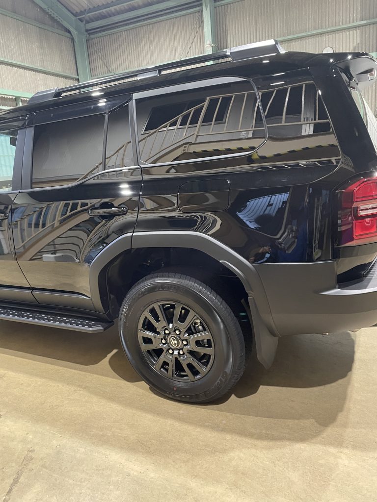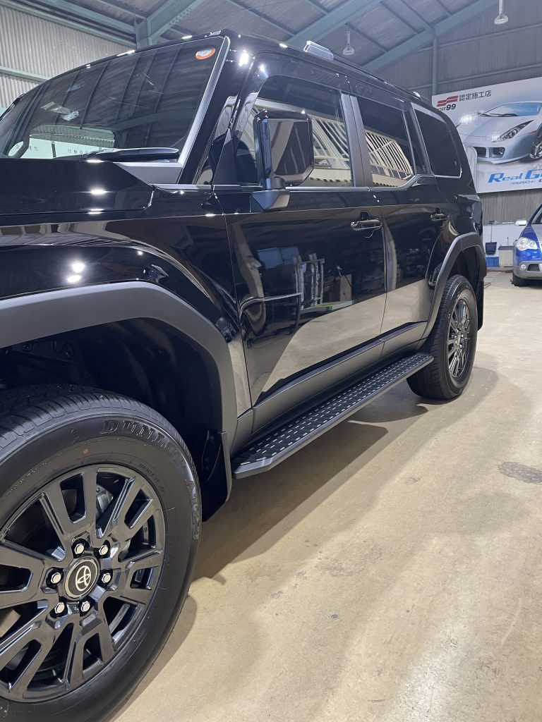 当社すぐご近所のY様、先月お知り合いのS様のデリカミニのコーティングをご紹介頂き、今回は届いたばかりの愛車、ランクル250のブラックをコーティングのご依頼です。ありがとうございます。