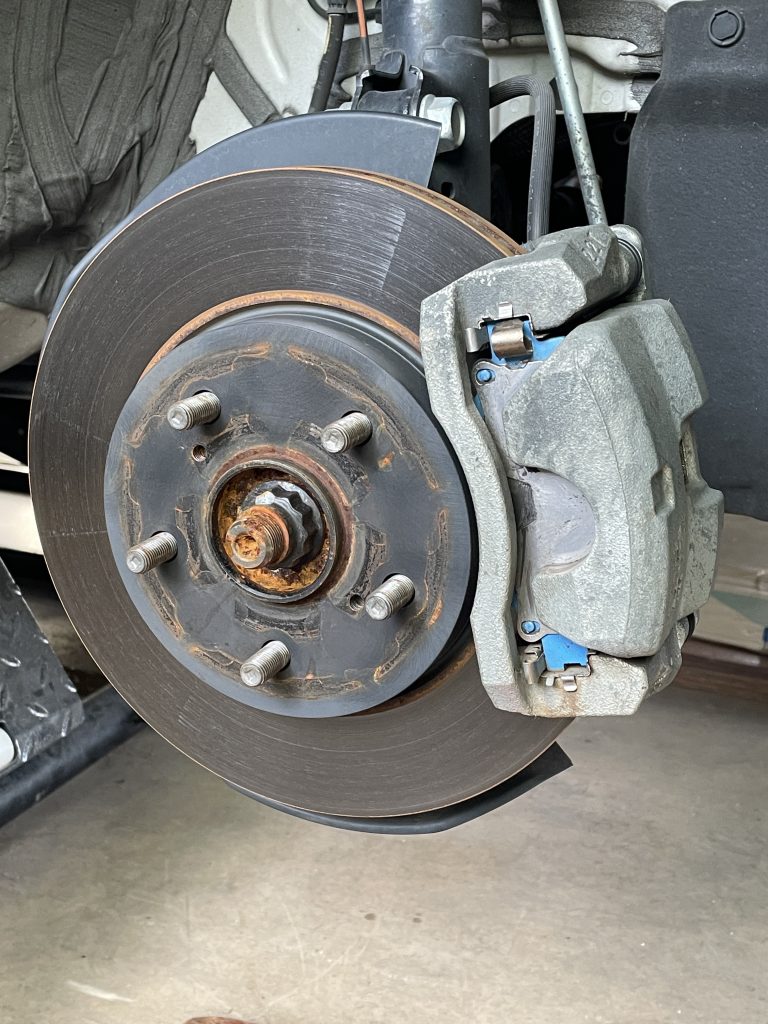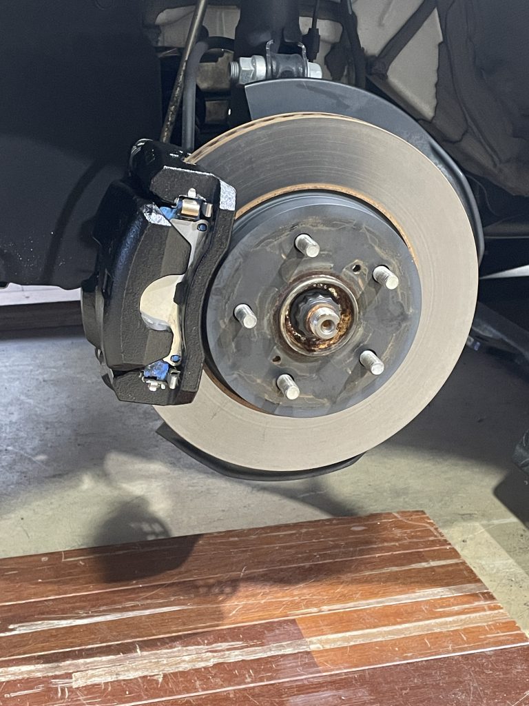 当社はキャリパー塗装に耐熱塗料を使っています。黒色に塗る方は初めてなのでお聞きしたら、マットブラックのホイールに渋く合わせたいとの事。塗料は半艶です。塗る前の処理は脱脂とマスキング、結構時間かかりますよ。4本で1時間も。